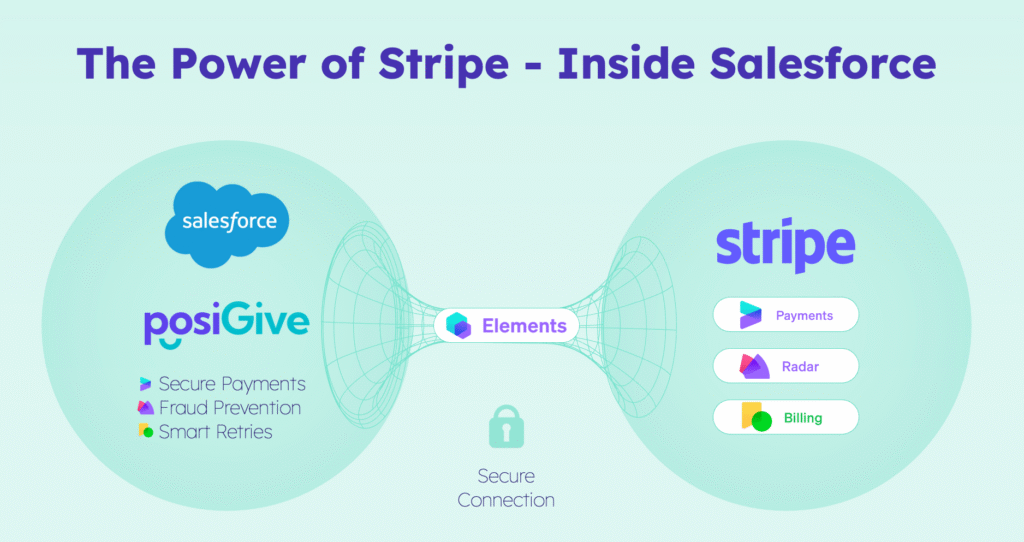 - Utilises Stripe elements to minimise PCI exposure in Salesforce